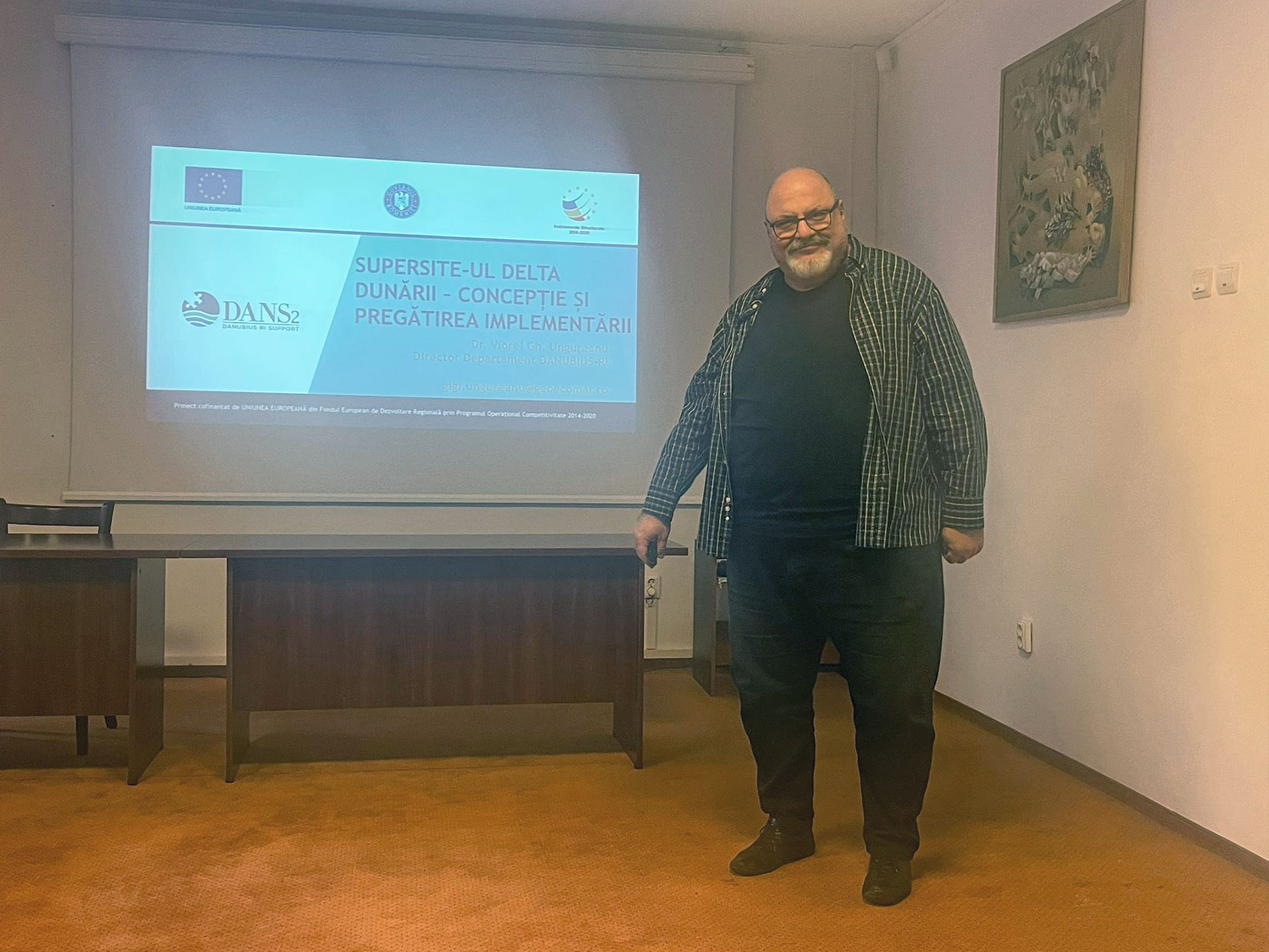 dr. Manuela Elisabeta Sidoroff, director proiect a prezentat proiectul DANS2 ca parte a proiectului DANUBIUS-RI precum și rezultatele obținute de INCDSB în cadrul proiectului DANS2, dr. Gigi Ungureanu, responsabil proiect din partea Institutului Național de Cercetare - Dezvoltare pentru Geologie și Geoecologie Marină – GeoEcoMar a prezentat super-situl Delta Dunării – de la conceptie la implementare, dr. Iulian Nicherșu, responsabil proiect din partea Institutului Național de Cercetare – Dezvoltare Delta Dunării Tulcea- INCDDD a prezentat contribuțiile INCDDD ia rdr. Venera Dobrică, responsabil proiect al Academiei Română, Institutul de Geodinamică „Sabba S. Stefanescu” a prezentat contributiile institutului care-l reprezintă la proiectul Proiect suport pentru pregătirea proiectului DANUBIUS-RI”.